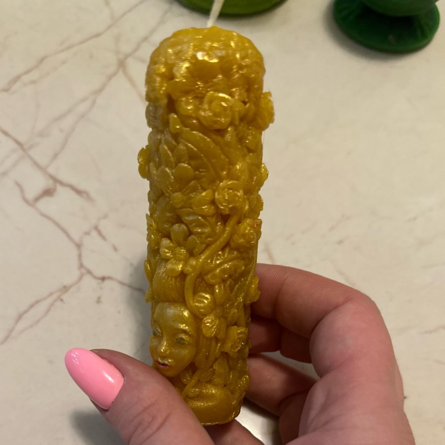 Невероятно красивая свеча из натурального воска, с добавлением натуральных трав, цветов и масел.