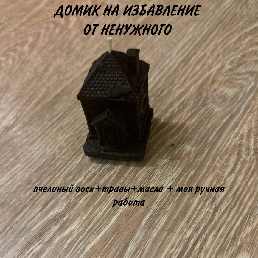 Я изготовила для вас свечу ДОМ черного цвета из пчелиного воска, с добавлением специально подобранных трав и масел.
